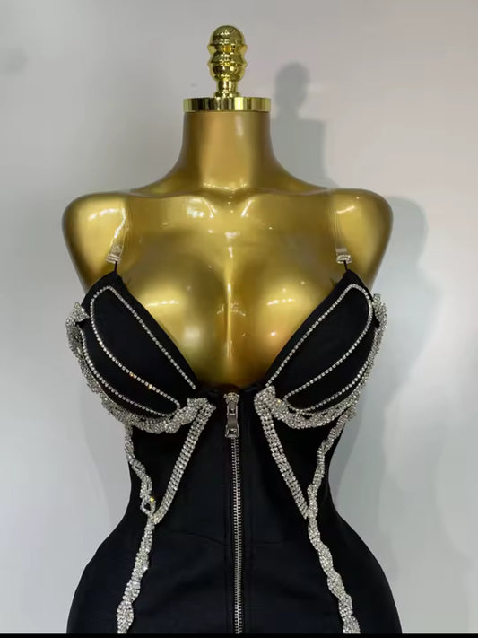 Crystal bandage black dress