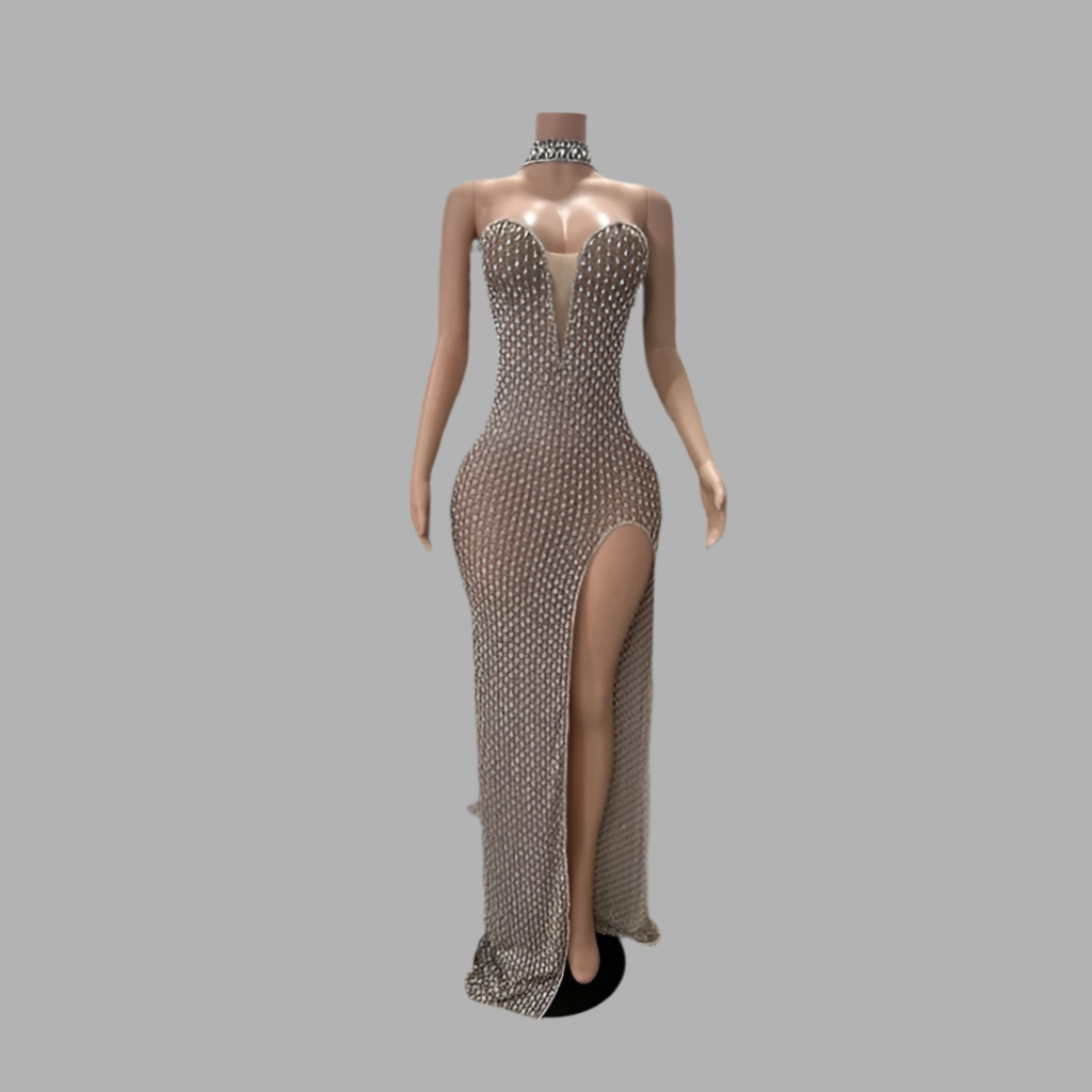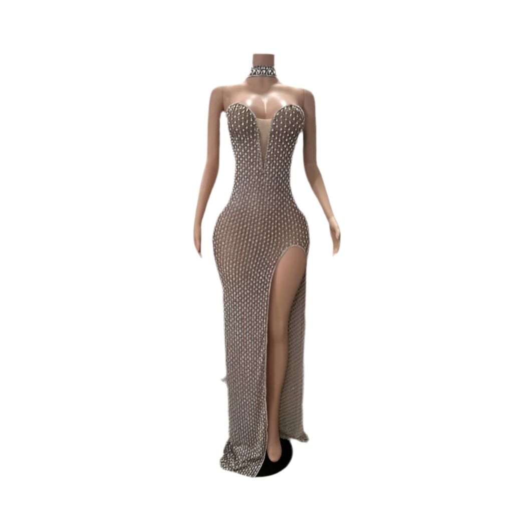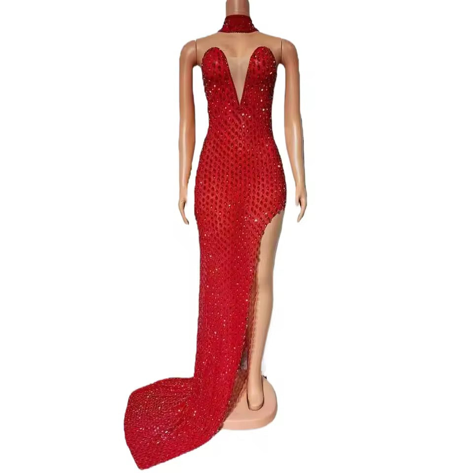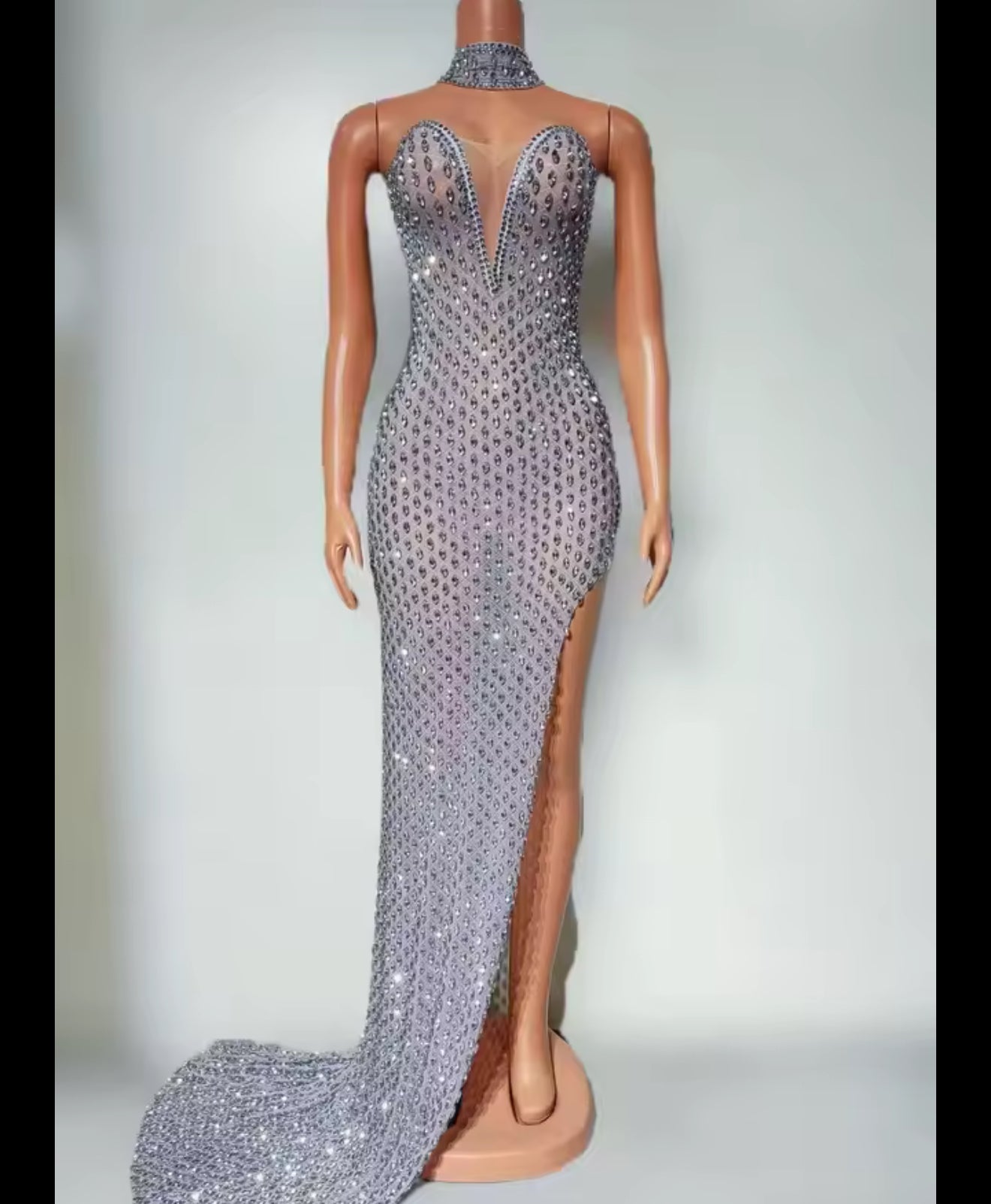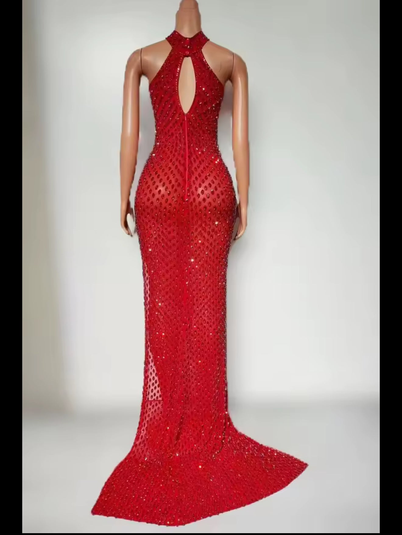 Marlyn dress Luxurious Full Rhinestones Mesh Transparent long dress Women Birthday Celebrate Evening Prom Gown Dress party